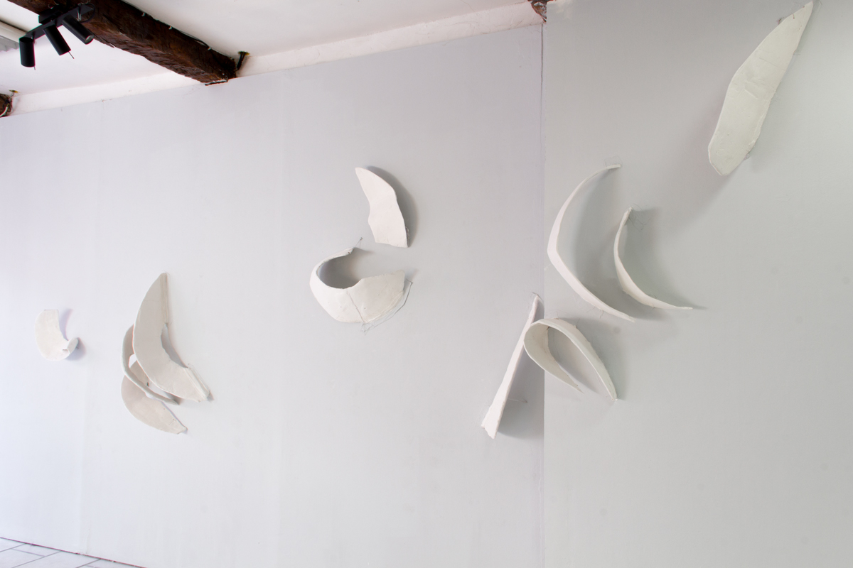 Peinture, acrylique sur papier Accademia, Oergamon et papier bouffant. Dimensions variables (modules de 50x70cm, 23x35cm et 12x18cm).