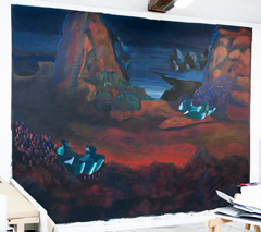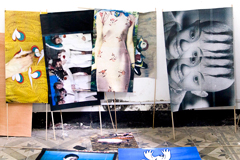 Installation, pastel à l’huile, acrylique, colle de peau, aimants, enduit sur papier et carton, 2x 200x100cm.