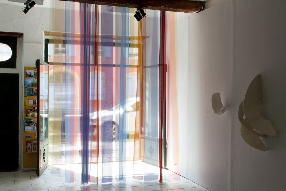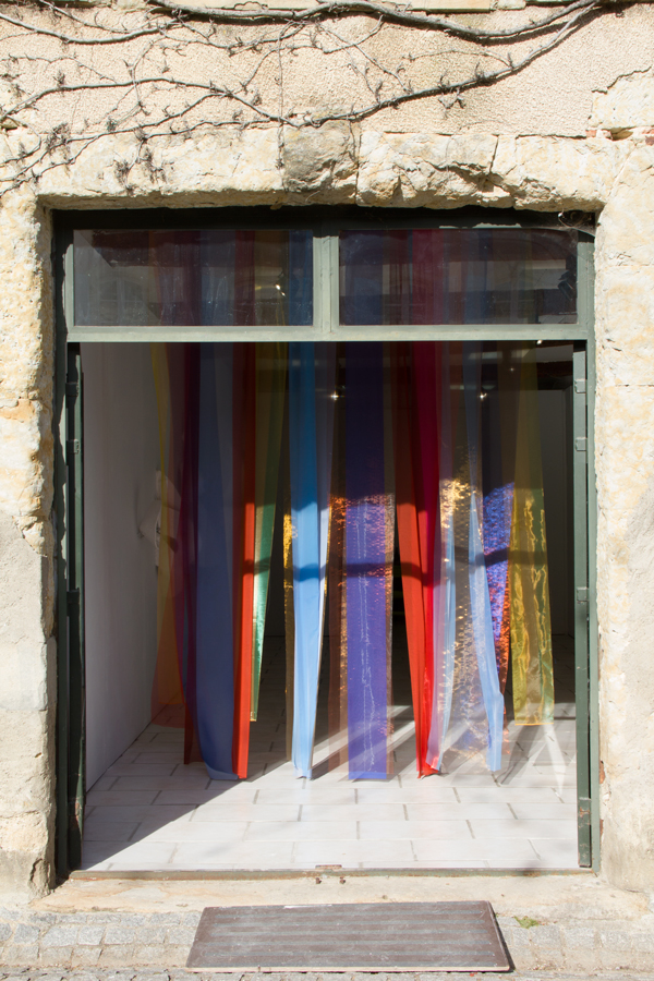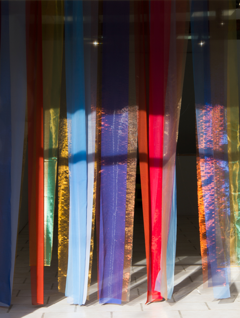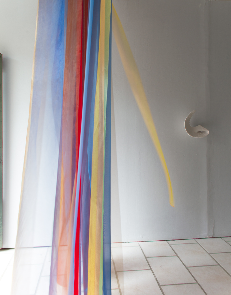 Installation in situ, tissus (organza, soie, mousseline), 320x210 cm.Vue d’exposition :