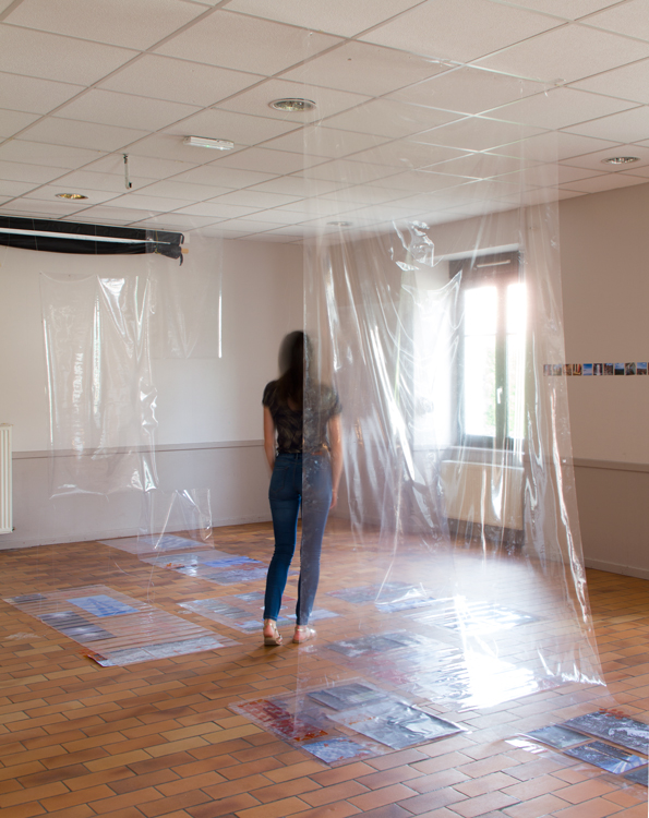 “Hélène Boutonnet propose un projet mêlant art un science, un travail entre le rythme organique de la respiration des êtres vivants et le rythme mécanique des horloges et des technologies de mesure du temps. Ces entrelacements et ces superpositions s’expriment par des installations dont les photographies servent un travail final de sérigraphie.