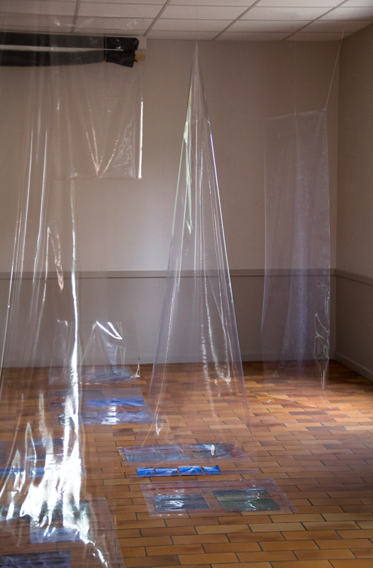 Installation in situ, tissus (organza, soie, mousseline), 320x210 cm.