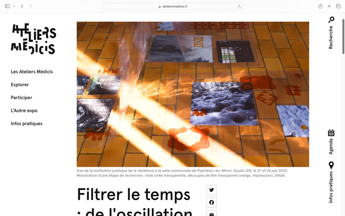 Documentation en ligne : journal du projet “Filtrer le temps : de l’oscillation des pendules aux rythmes des respirations”, à Plaimbois-du-Miroir (25), soutenu par les Ateliers Médicis dans le cadre des résidences de recherche et de transmission Création en cours 7ème édition.
